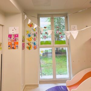 Nous avons également la chance de disposer d’une courette où les enfants peuvent prendre l’air et faire du toboggan ou des activités en extérieur.