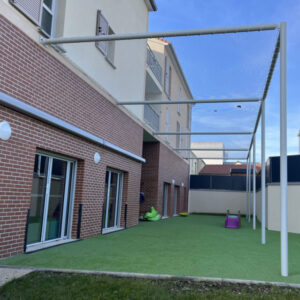 Ces espaces sont conçus et aménagés par notre équipe pour répondre aux besoins des enfants : explorer, jouer, courir, sauter, se cacher, se nourrir, se laver, se reposer, rêver… Nous avons également la chance de disposer d’un espace extérieur où les enfants peuvent gambader, profiter de notre équipement de motricité et découvrir le jardinage.